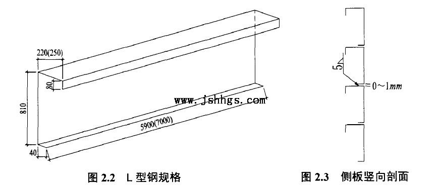 在曼型气柜的立柱和立柱之间,设置了大量的卷边L型钢,其截面见图2.2"一块块L型钢上下叠置,在卷边的端部焊以水平焊缝,构成了柜体的侧壁板(图2.3)"L型钢和立柱通过焊缝焊接紧密(图2.4),这些焊缝除了保证构件强度外,还能保证气柜气密性,侧板和立柱一起,组成了一个密封严密的棱柱体薄壳结构"通过单块L型钢的形式及壳体组成,很容易看出侧板制作成这样的形式是很合适的,其制作加工!运输安装都比圆柱面方便很多"由于单块L型钢是冷成型的(圆柱形的侧板要加焊加劲肋),其加工精度很容易控制,而单块L型钢的准确尺寸可使整个壳体的安装精度得到保证,这对气柜的安全运行是至关重要的"目前,我国已建成气柜的侧板,大都采用图2.2所示的规格"10万m3以上的气柜采用7m系列,厚度为6~,8万m3以下的用5.9m系列,厚度为5~,这与原联邦德国和日本的系列大致相同。