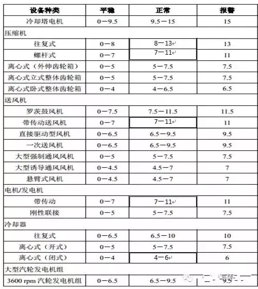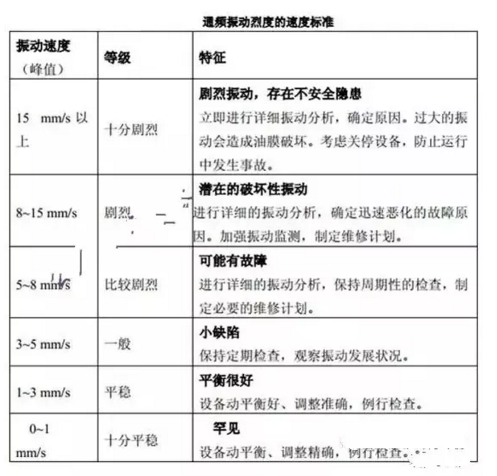对于不上述范围内的设备,下表 “通频振动烈度的速度标准”可以提供相应的振动评价方法。