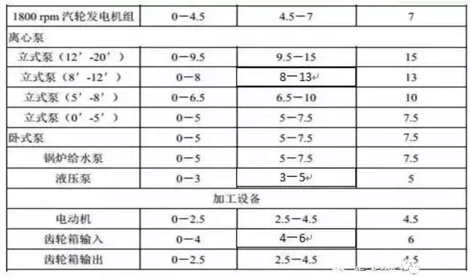 在缺乏历史记录的情况下,表格给出的警告区域就是预知性维修计划启动的实际起始点。设备处于该状态时必须进行全面分析,寻找造成振动的原因,并根据计划尽早停机维修。