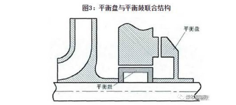平衡鼓在离心压缩机轴向力平衡领域应用较为广泛,其结构如图2所示,平衡鼓不存在轴向间隙(公众号:泵管家),带压液体经平衡鼓径向间隙进入平衡腔,构成高压,于其后的空腔内壁上设置平衡管与泵入口相通,使腔内压力始终大于或等于入口压力,从而达到平衡轴向力的目的。