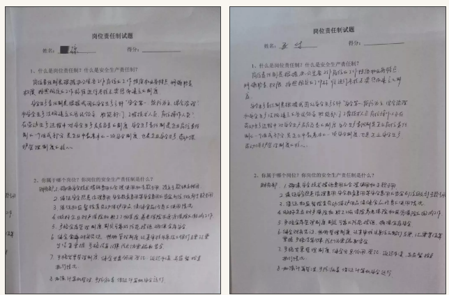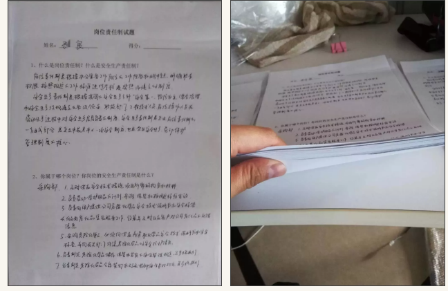 5月14日,昆山市应急管理局执法人员在对千灯镇昆山科世茂包装材料有限公司进行执法检查时,发现该公司提供的安全生产教育培训台账中,多份作答试卷和考试签到表笔迹相似,经现场询问,该公司安全员竟为了应付检查,顶替多名作业员工抄写考试试题,制作虚假的安全生产教育培训台账,存在明显弄虚作假行为。执法人员当即开具了《责令限期整改指令书》,责令企业限期改正。